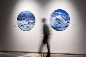 conceptually and physically, enacting the duality of the exhibition’s
