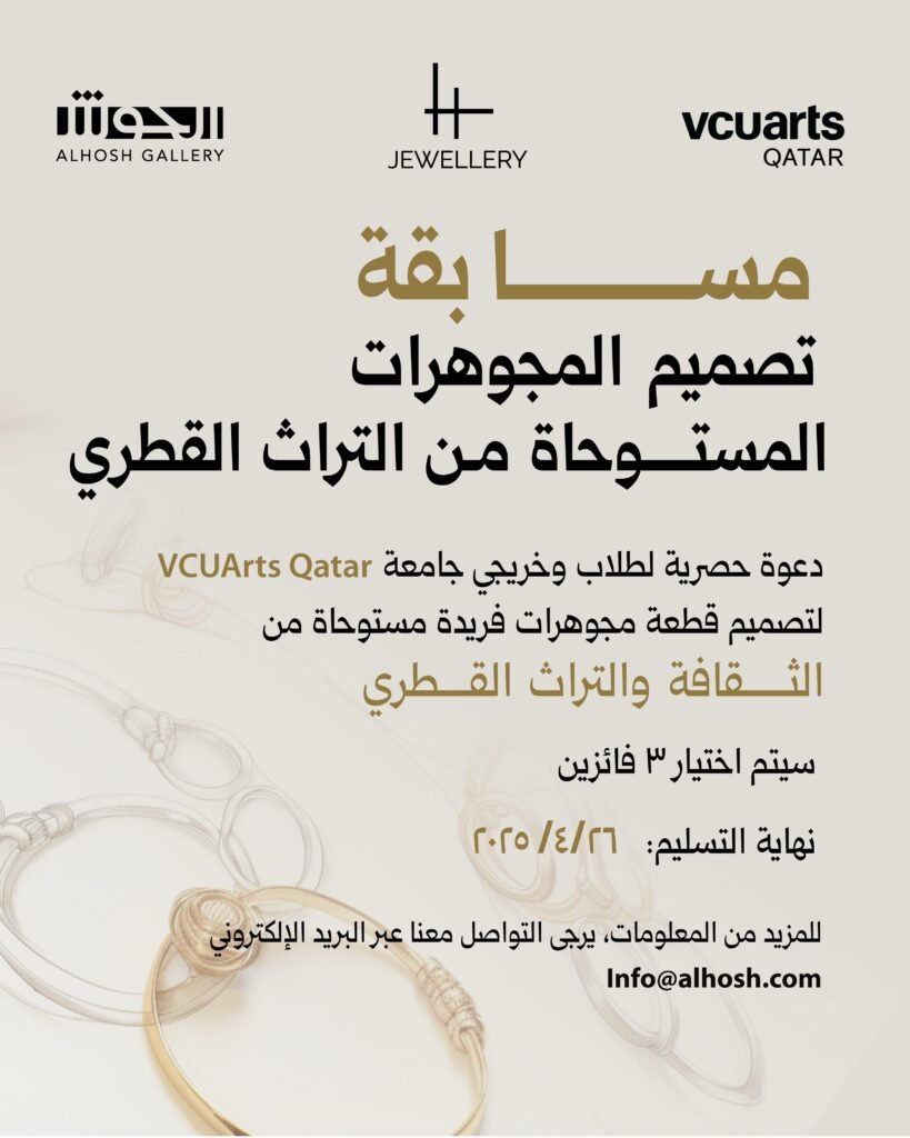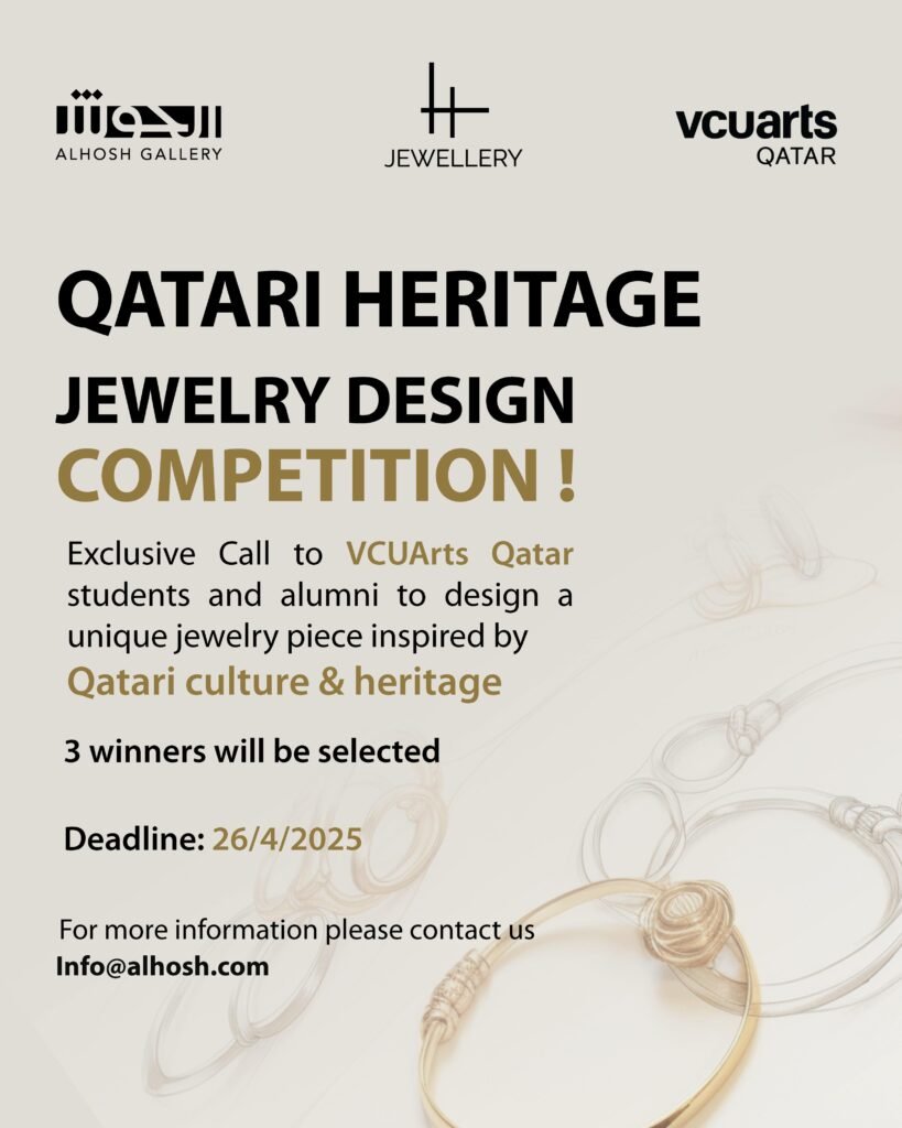 The Jewelry Design Competition at Virginia Commonwealth University School of the art in qatar 🎓💎 is dedicated to nurturing and cultivating the creative talents of both students and alumni. This esteemed competition invites participants to explore and express their artistic visions through innovative designs 🎨✨ that draw inspiration from the rich tapestry of Qatari culture, heritage, and the vibrant natural environment 🏜️🌊🐪. By encouraging a deep engagement with these elements, the competition seeks to celebrate and elevate the unique identity of Qatar through the art of jewelry design👑💠.